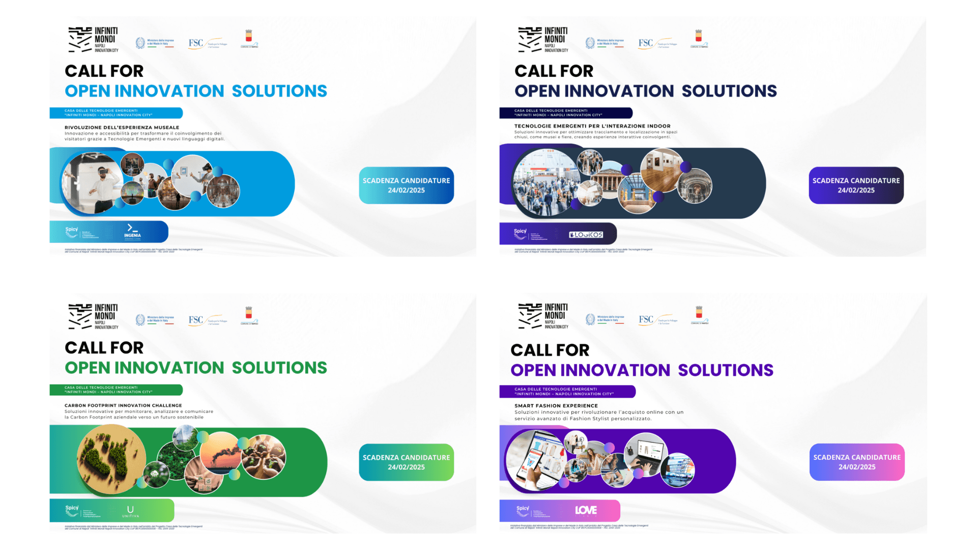 Il Programma di Open Innovation della Casa delle Tecnologie Emergenti “InFiniti Mondi – Napoli Innovation City” è un’iniziativa strategica finalizzata a favorire l’incontro tra la domanda di innovazione – proveniente da PMI e Grandi Imprese – e l’offerta tecnologica proposta da startup, spinoff e PMI appartenenti al settore delle Industrie Culturali e Creative. Il programma si configura come un dispositivo operativo per stimolare la collaborazione intersettoriale, la contaminazione tra mondi produttivi e l’adozione di Tecnologie Emergenti.