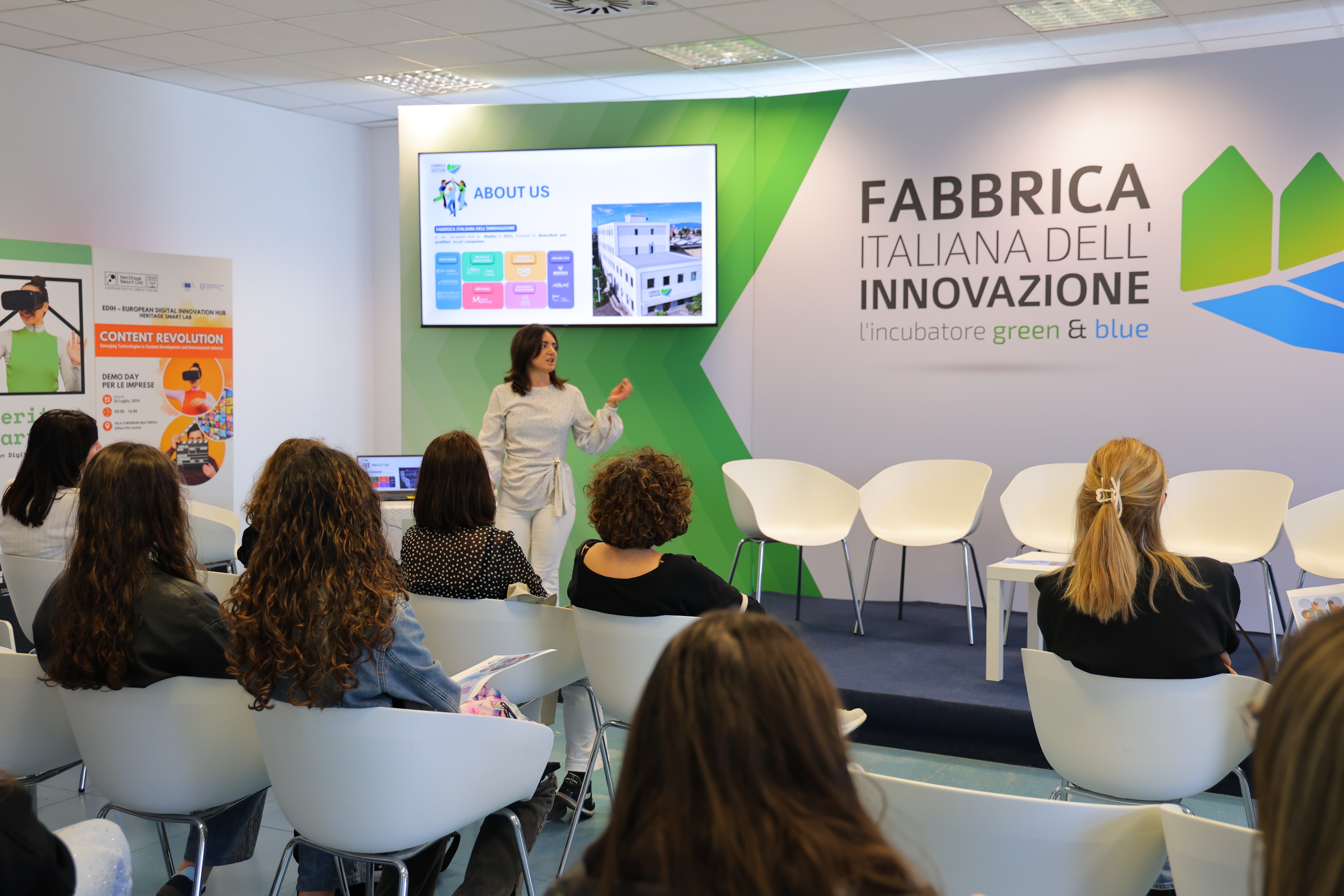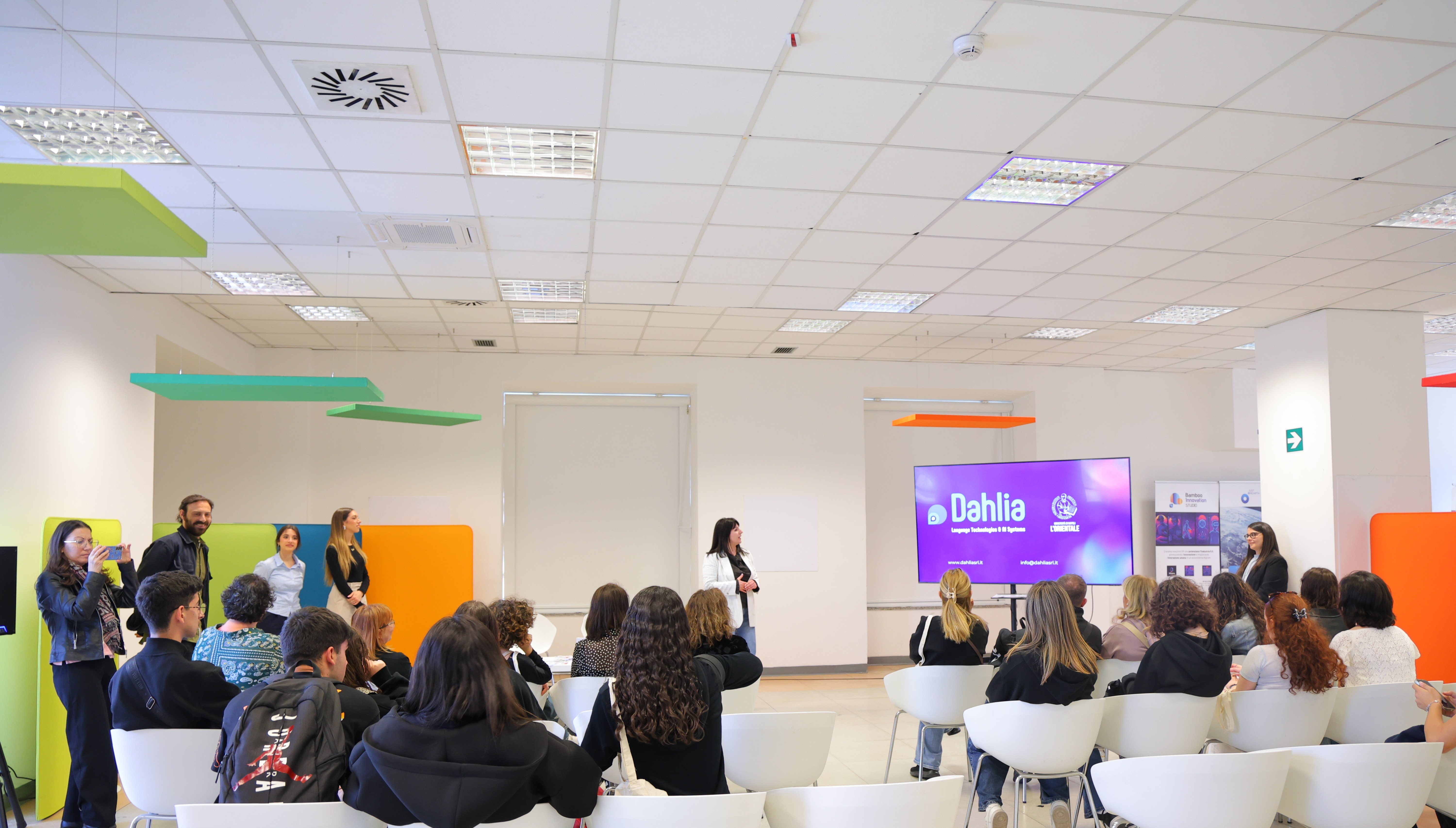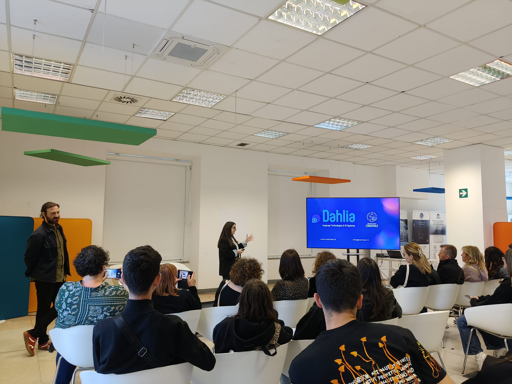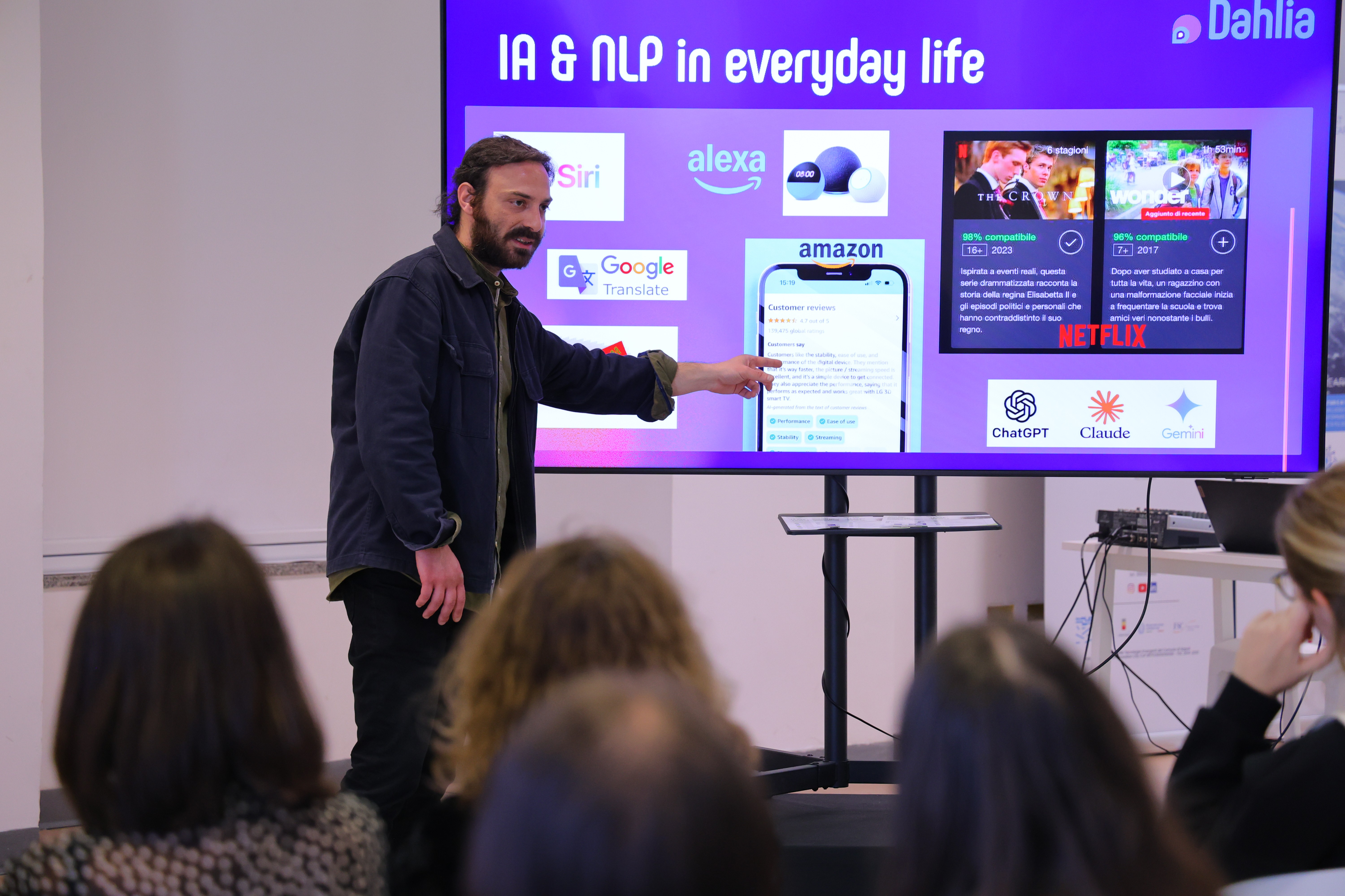 The afternoon concluded in the coworking room with contributions from Giulia Speranza and Raffaele Manna, Co-founder of Dahlia s.r.l., a company that develops innovative solutions in the field of language technologies and AI, offering the students a concrete example of how an idea can turn into a high-tech business.