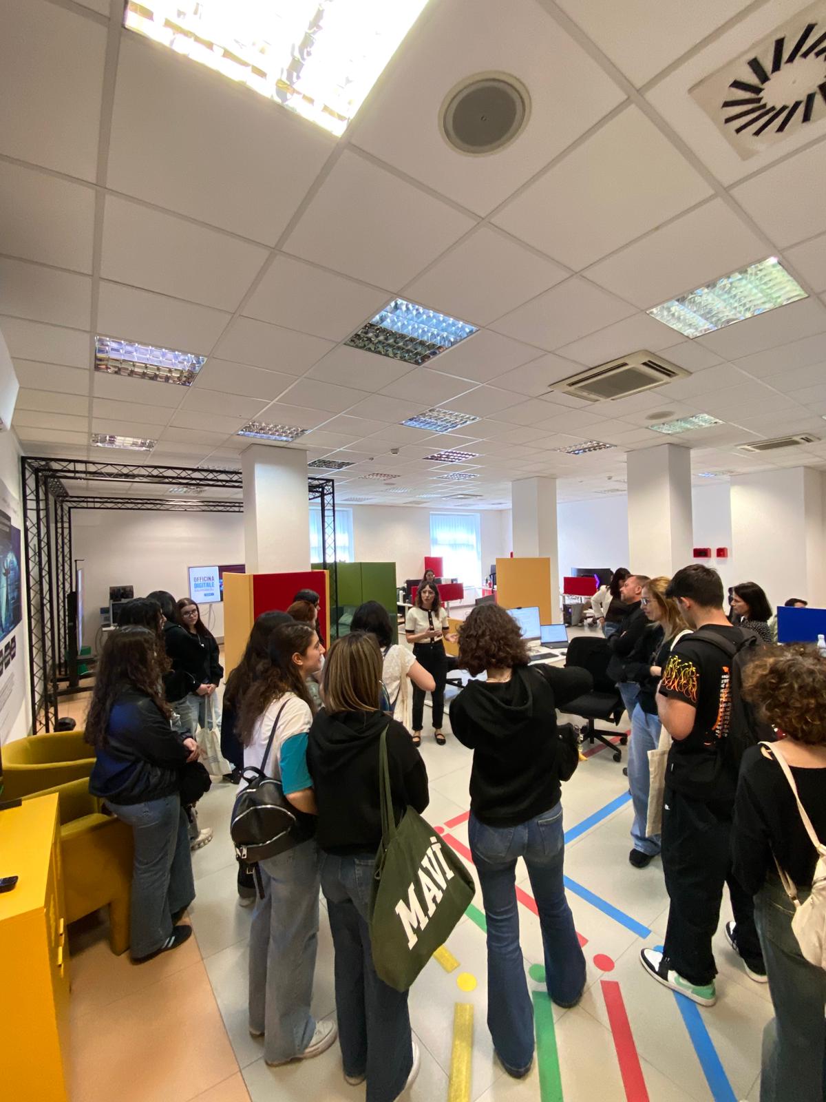 Following that, Greta Attademo, head of the Digital Storytelling Lab, guided the students on a tour of Officina Digitale, enriched by an interactive moment that made the participants active protagonists of the experience, putting them in direct contact with the tools and ongoing projects.