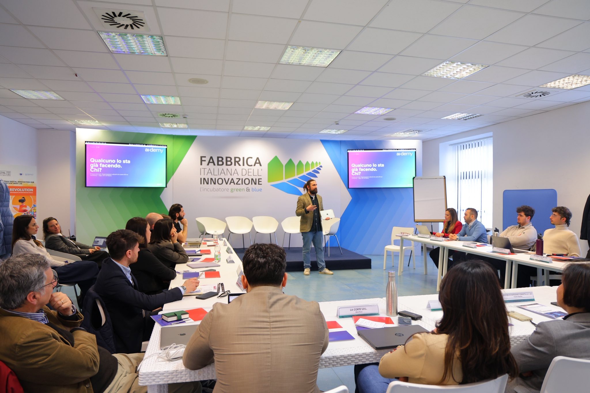 Al centro della mattinata, il workshop “AI Marketing Alchemy”, facilitato da Jack Sabba Capetta , ha coinvolto le aziende selezionate in un’attività laboratoriale dedicata alla costruzione di un ecosistema di marketing aumentato, attraverso l’uso di strumenti di IA generativa e un approccio orientato alla traduzione operativa dei fabbisogni delle imprese.