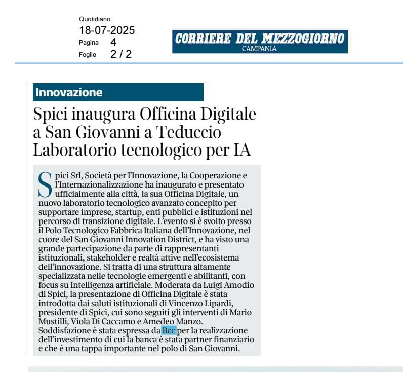 Spici, via all’Officina digitale: un nuovo laboratorio per l’innovazione tecnologica e la transizione digitale